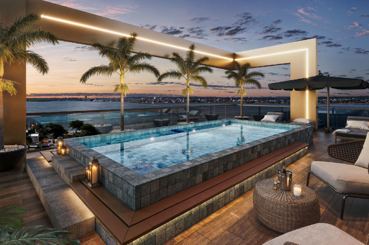 Sum / Piscina / Rooftop / Espacio Asador / Piscina y solarium / Petshower / Gimnasio / Salón de masajes / Salón de belleza / Sauna
