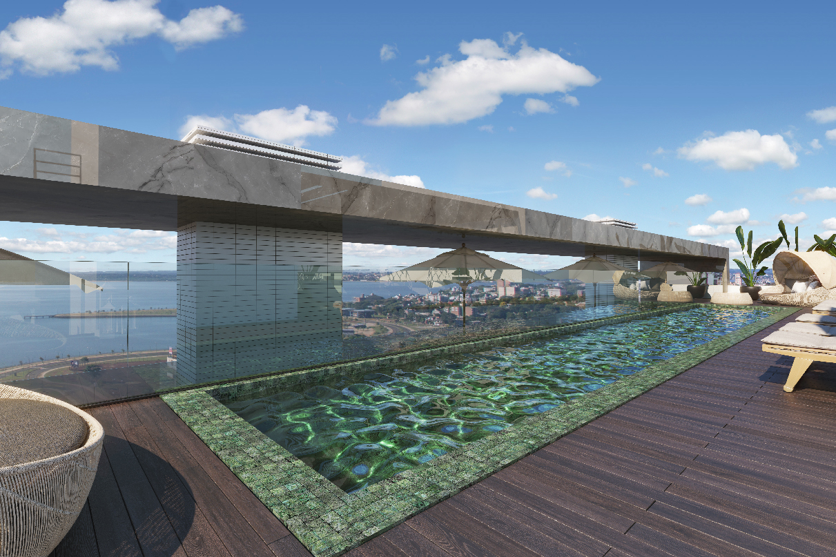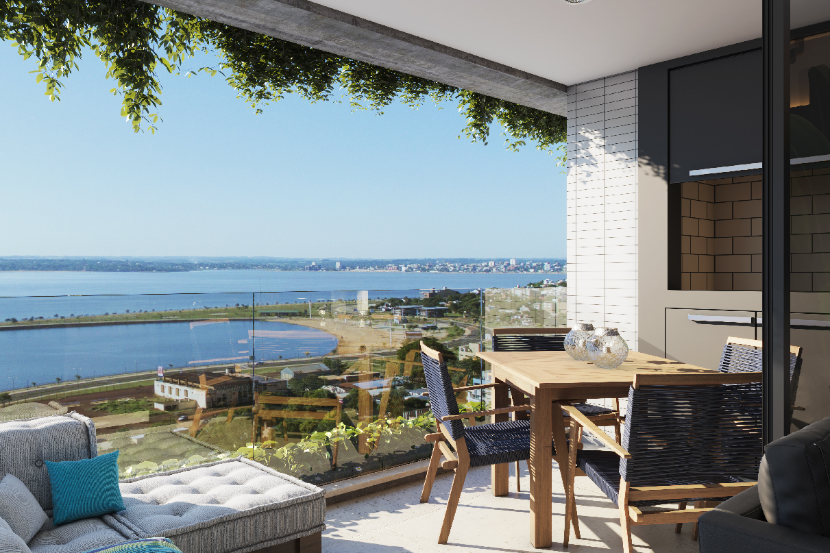 Terraza amplia con vista al río. Cuenta con piscina y solarium